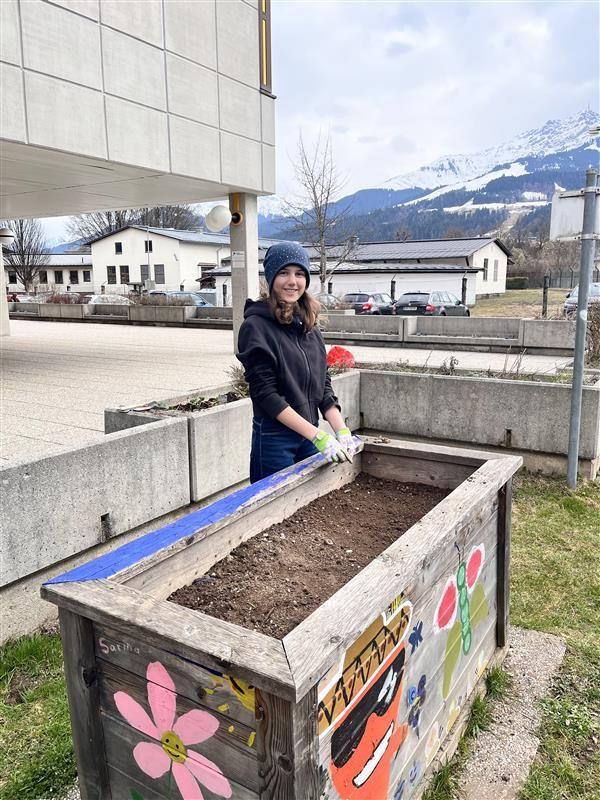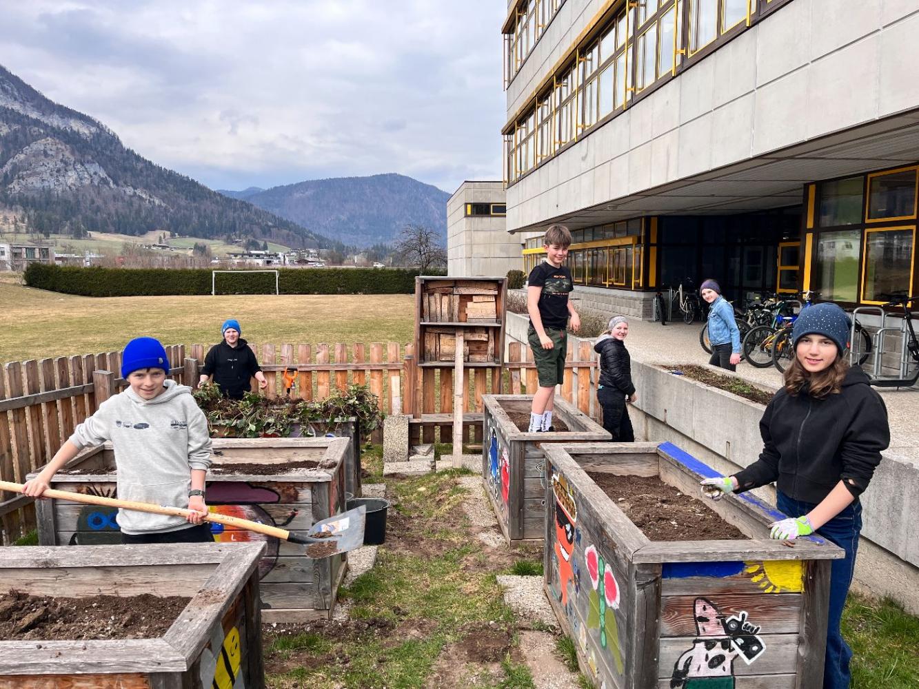 Einige Schüler:innen der 2b haben in Form von Projektstunden den Schulgarten der MS 2 für die Gartensaison 2026 vorbereitet. Unkraut wurde gezupft, die Hochbeete mit frischer Erde aufgefüllt, Radieschen und Karotten gesät und ein neues Erdbeerbeet angelegt.