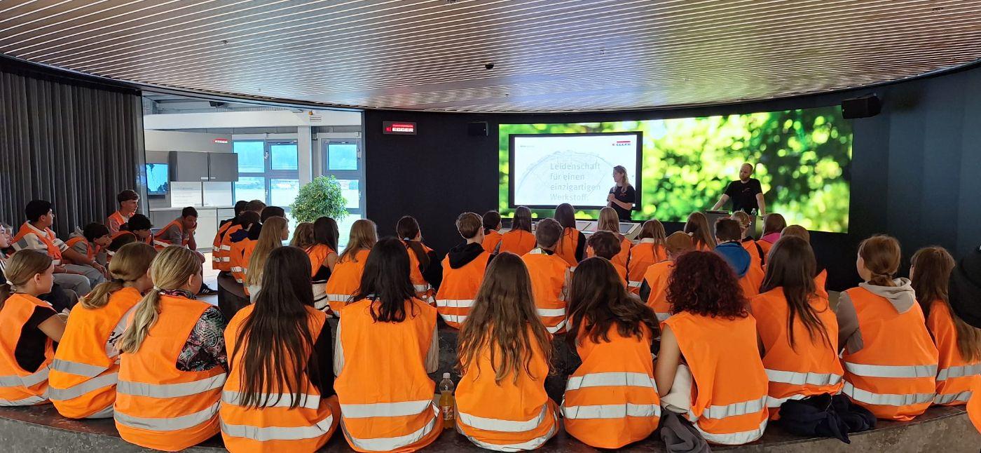Besonders beeindruckend war die Erklärung der verschiedenen Produktionsschritte und die Möglichkeit, einige der Maschinen aus nächster Nähe zu betrachten. Die Führungskräfte nahmen sich viel Zeit, um alle Fragen der Schülerinnen und Schüler zu beantworten und ihnen die Bedeutung nachhaltiger Produktion, aber auch über die vielen Lehrberufe, die Egger ausbildet, näherzubringen.