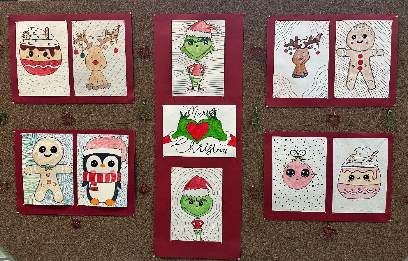Es weihnachtet an der Mittelschule 2. Im Unterrichtsfach Kunst und Gestaltung brachten die Schüler:innen die Weihnachtszeit auf Papier! Mit viel Können wurden viele verschiedene Kunstwerke erstellt. Ein bunter Mix aus Motiven und Techniken entstand dabei.