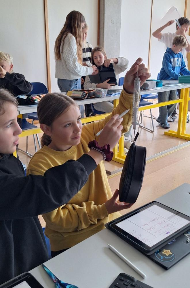 Im Rahmen des MINT-Unterrichts führten die Schülerinnen und Schüler der 2b spannende Messreihen zum Thema Masse und Gewichte durch. Mit Hilfe digitaler und mechanischer Waagen wurden verschiedene Alltagsgegenstände – von Scheren über iPads bis hin zu Regenschirmen – genau abgewogen.