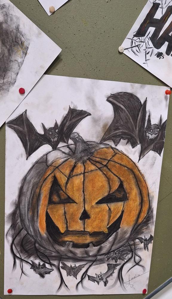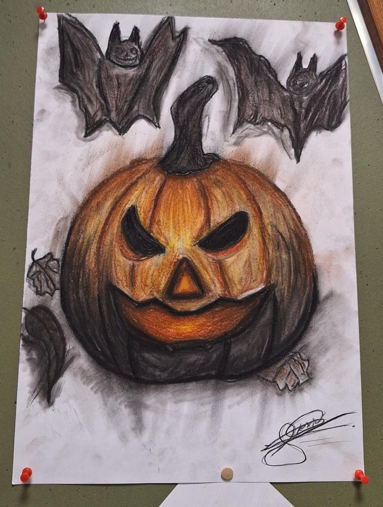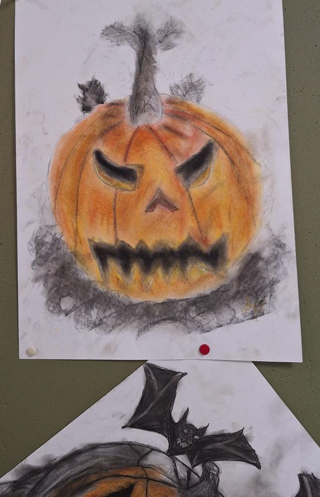 Pünktlich zu Halloween verwandelte sich die Mittelschule mithilfe der 4a in ein wahres Gruselkabinett. Im Fach Kunst und Gestaltung entstanden unter der Anleitung ihrer Lehrkraft schaurige Zeichnungen, die selbst mutige Besucher zweimal hinschauen lassen.