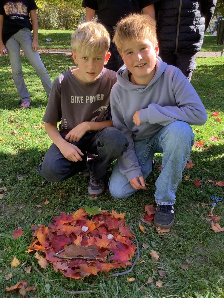 Ganz spontan ließen sich die Schüler:innen der Klasse 2a von der farbenprächtigen Natur im Park inspirieren… aus Blättern, Blüten, Früchten und Zweigen entstanden tolle Kunstwerke zum Bestaunen! Auch bei der Namensgebung waren die Künstler:innen äußerst kreativ!