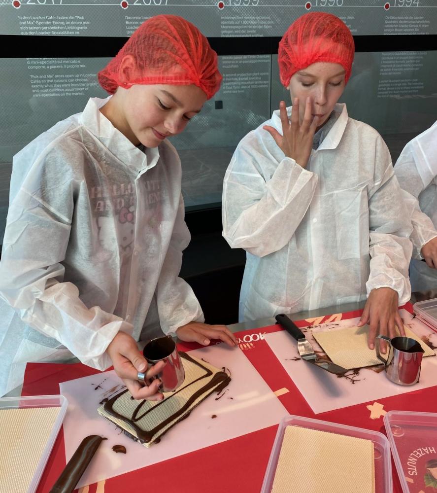 Gleich zu Beginn besuchten wir die Loacker Mitmachkonditorei. Dort konnten wir unsere eigenen Waffeln herstellen – natürlich mit ganz viel Schokolade und leckerer Creme. Ein süßer Start in unsere Reise!