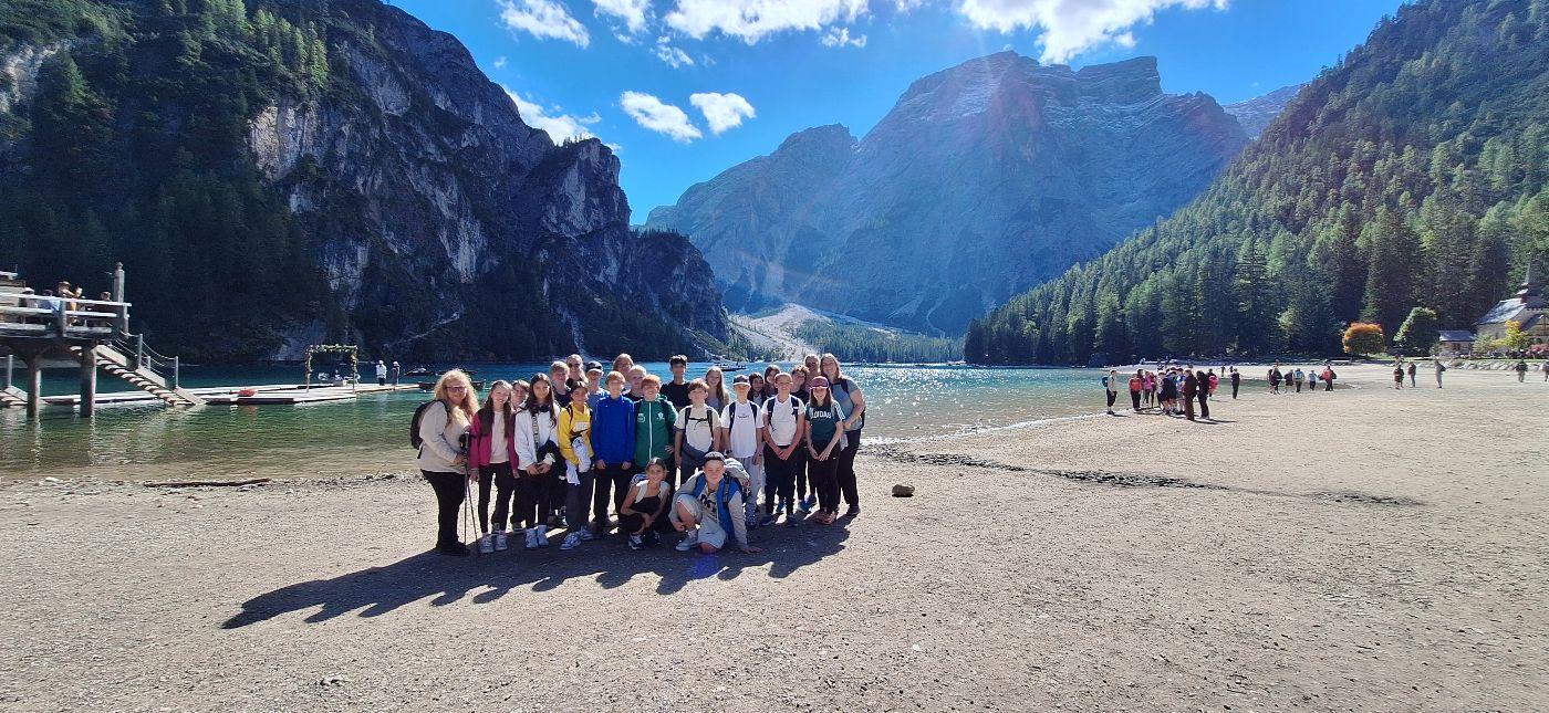 Am Montag, den 29.9.2025 ging es für uns nach Südtirol. Voller Vorfreude stiegen wir in den Bus. Nach einer kurzen Busfahrt statteten wir der Firma Loacker in Heinfels einen Besuch ab. Dort verzierten wir alle unsere eigene Waffel und durften die köstliche Kostprobe mit nach Hause nehmen. Unser nächstes Ziel war der Pragser Wildsee, um den wir wanderten und unsere Mittagspause verbrachten. Abschließend wurden wir zu unserer tollen Unterkunft nach Brixen gebracht. Nachdem die Zimmer bezogen wurden, machten wir uns wieder Ausgehbereit, um das Abendessen im Restaurant einnehmen zu können. Ein ereignisreicher Tag neigte sich nach einem Abendspaziergang durch Brixen dem Ende zu.